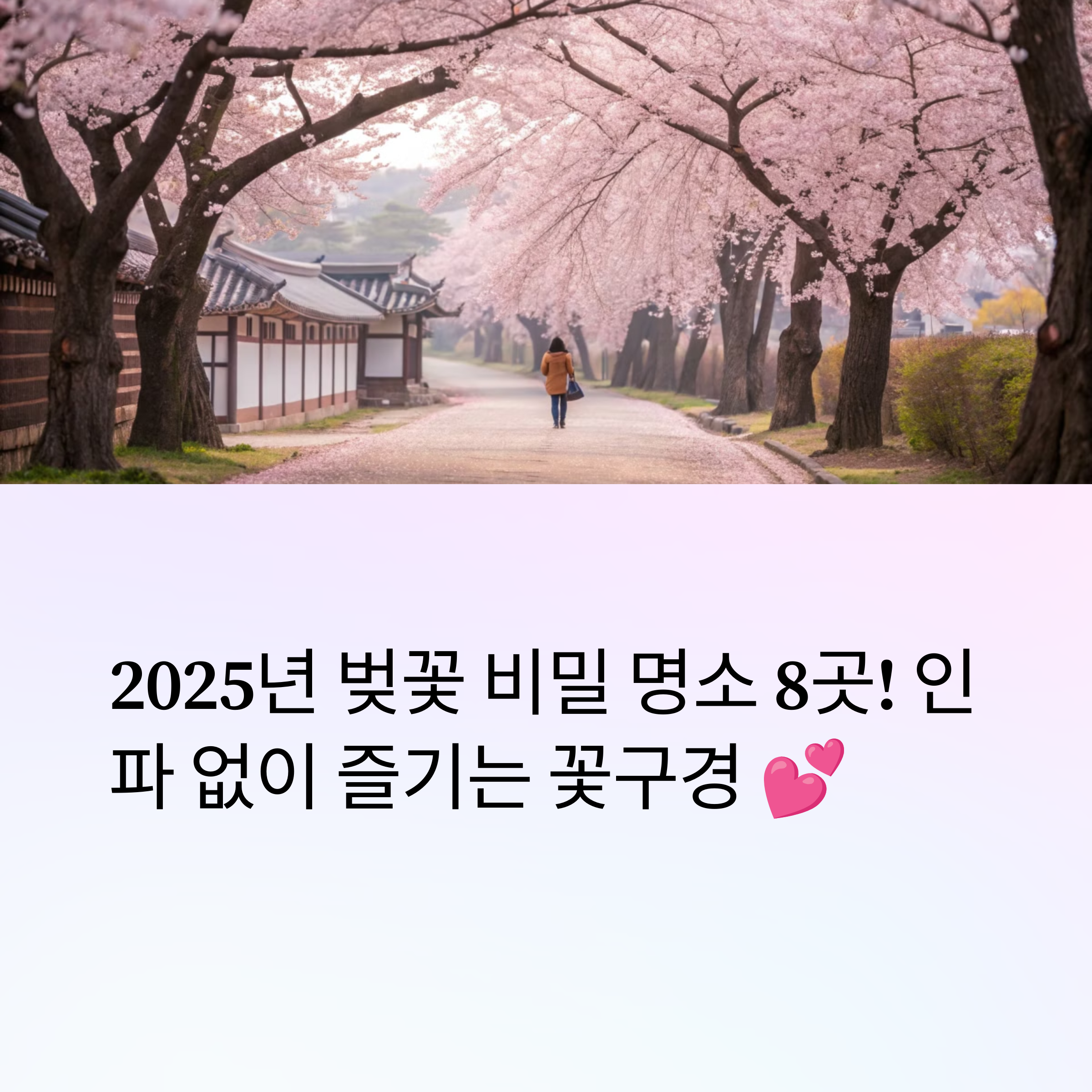 그래서 준비했어요! 2025년, 덜 알려졌지만 아름다운 한적한 벚꽃길과 숨겨진 명소들을 소개할게요. 사람 붐비지 않는 벚꽃길에서 여유로운 봄을 만끽해 보세요. 🌸🚶♂️